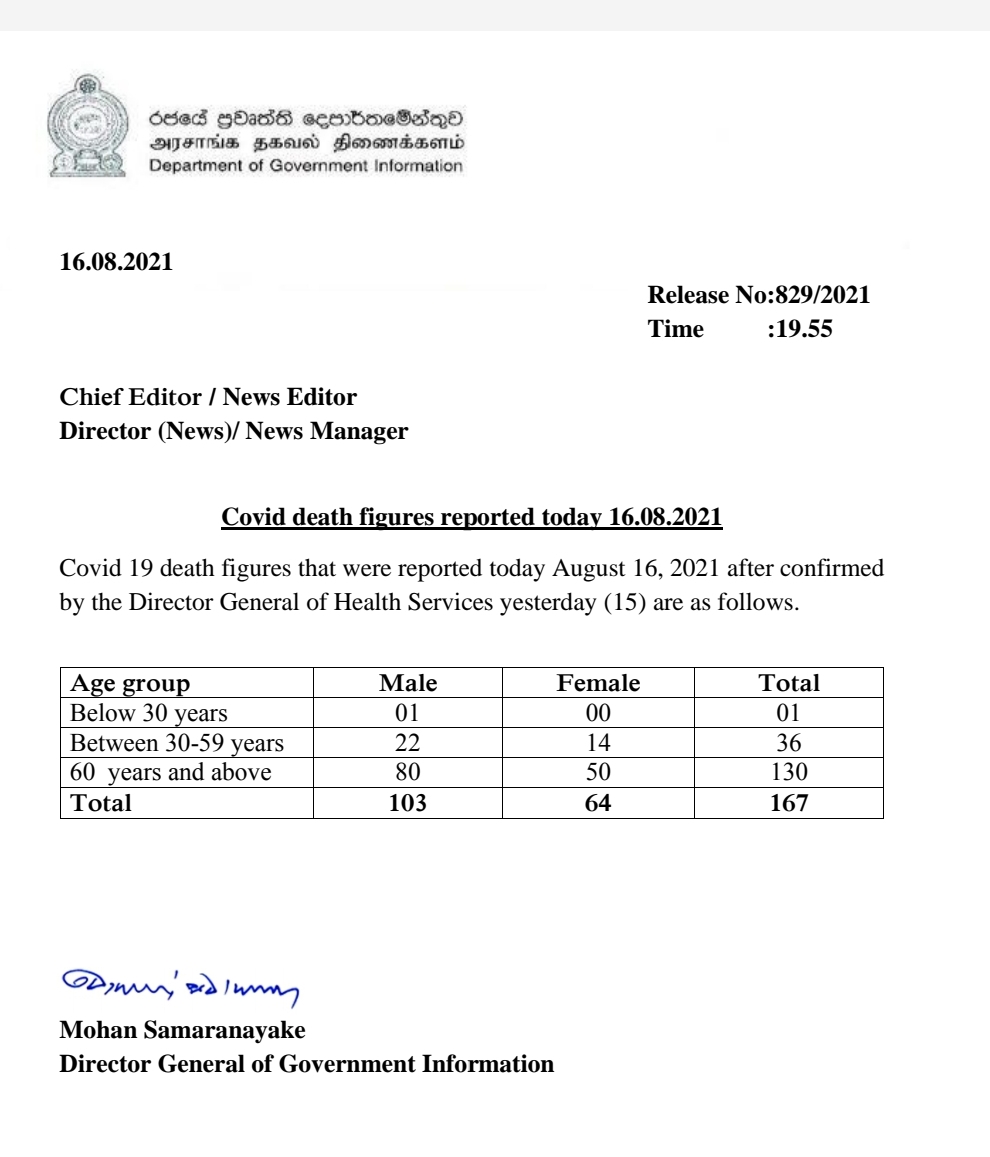 HomeNEWSLocal167 Covid-19 deaths reported on Monday (16) 167 Covid-19 deaths reported on Monday (16) 17/08/2021byAdmin 167 Covid-19 related fatalities were reported on Monday (16 Aug) increasing Sri Lanka’s Covid-19 death toll to 6,263. Post Views: 409