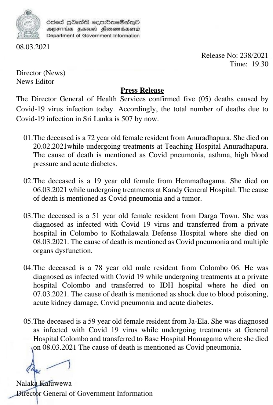 HomeNEWSLocal5 CV-19 deaths reported yesterday (08) 5 CV-19 deaths reported yesterday (08) 09/03/2021byAyman Ameer Post Views: 768