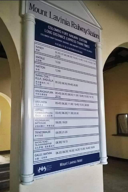 The Railway Department is to launch an investigation into a notice board placed at the Mount Lavinia railway station which is in Mandarin (Chinese).