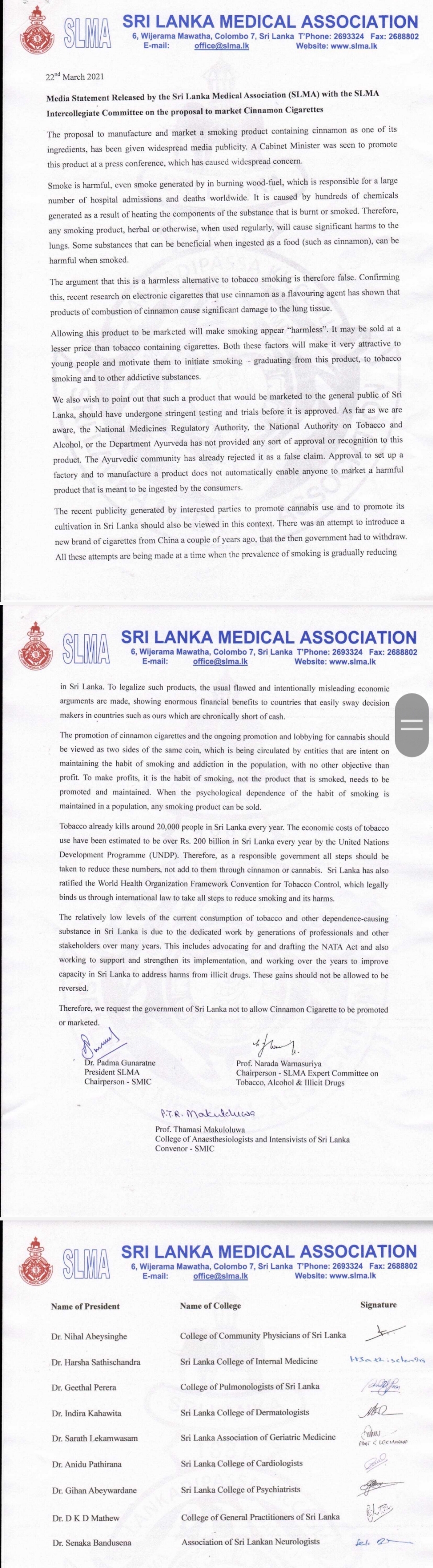 HomeNEWSLocalSLMA statement on Cinnamon Cigarettes SLMA statement on Cinnamon Cigarettes 25/03/2021byAdmin Post Views: 450