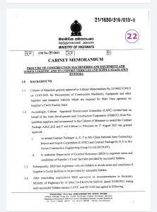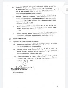 The Cabinet of Ministers – as evidenced by the attached documents – have given their approval to SD&CC to make capital expenditure with the Chinese state-owned corporate M/s CATIC in the sum of USD 147.4 Million. The transaction is under what is referred to as Suppliers’ Credit. In this instance the period of the credit is 4 years with an interest rate at 3% per annum.
