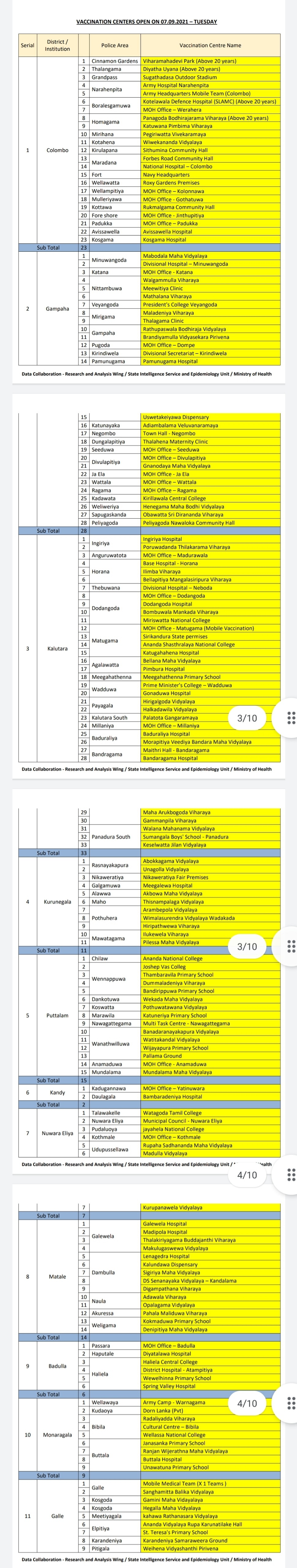 Local Official Notices Vaccination centers active Tuesday (07) 07/09/20211 min read Admin 383 Covid-19 vaccination centers will be operated in Sri Lanka on Tuesday (07), government sources stated. Post Views: 817 Share Facebook Twitter Pinterest Linkedin