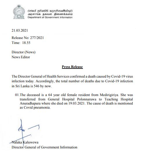 HomeNEWSLocal1 Covid-19 related death reported yesterday (21) 1 Covid-19 related death reported yesterday (21) 22/03/2021byAyman Ameer Post Views: 422