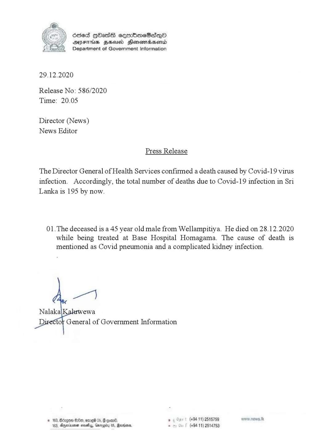 HomeNEWSLocal1 CV-19 death reported yesterday (29) 1 CV-19 death reported yesterday (29) 30/12/2020byAyman Ameer 1 Covid-19 death was reported in Sri Lanka yesterday (29) increasing the country’s Covid death toll to 195. The deceased is a 45-year-old male from Wellampitiya Post Views: 622