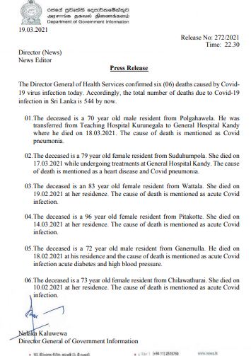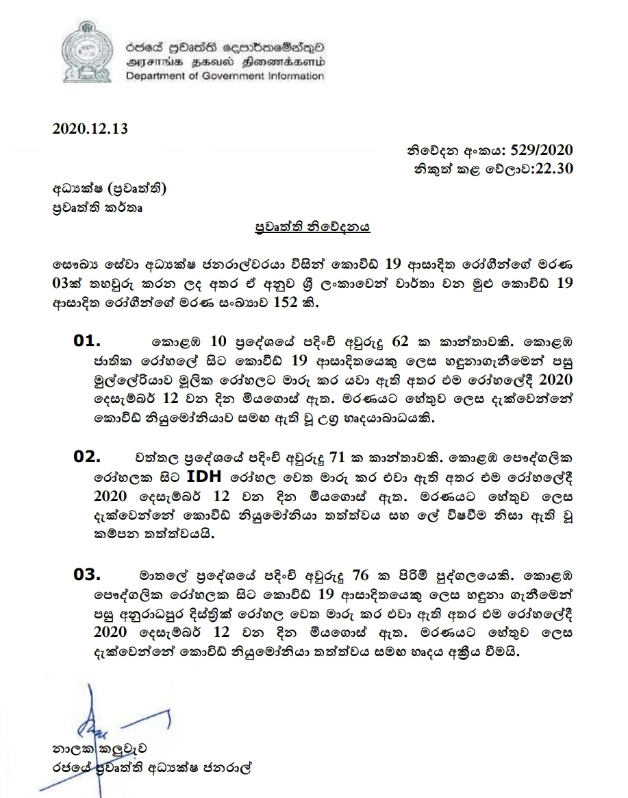 HomeNEWSLocal3 CV-19 deaths yesterday (13); Sri Lanka’s death toll tops 150 3 CV-19 deaths yesterday (13); Sri Lanka’s death toll tops 150 14/12/2020byAyman Ameer Sri Lanka’s Covid-19 death toll hits 152 following the confirmation of three deaths on Sunday (13). Post Views: 475