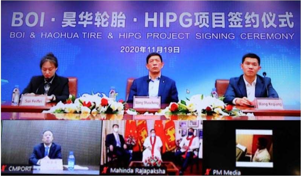 The first-ever foreign direct investment to the Hambantota Port industrial zone was signed off yesterday, via video conferencing. BOI Chairman Susantha Ratnayake, Cao Mingzhang from the company and Xu Jiancun from Hambantota International Port Group had signed the agreement with the Prime Minister and Finance Minister Mahinda Rajapaksa as a witness.