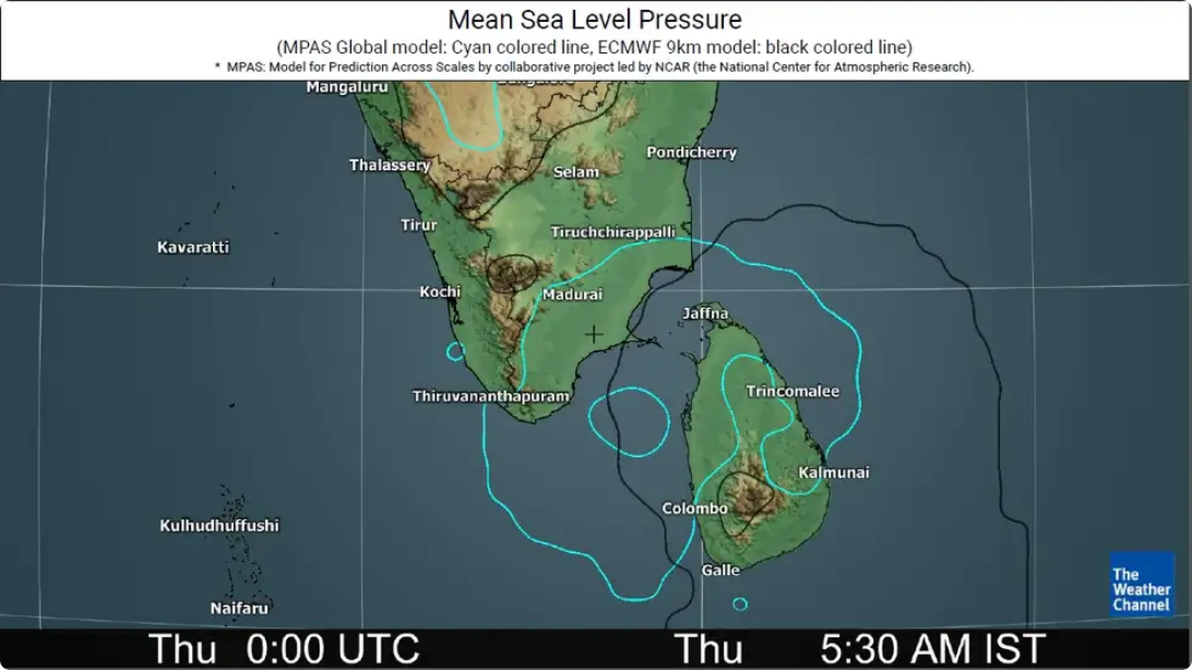 However, the system is likely to reach a maximum intensity of 60-70 kmph gusting to 80 kmph, and bring very heavy rains across southern Tamil Nadu and Sri Lanka.