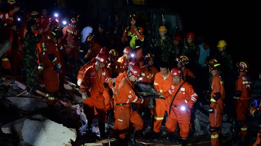 State broadcaster CCTV showed footage of rescuers bringing a survivor out of the rubble of a building on a stretcher overnight. Other images showed a woman being helped out of another collapsed structure.