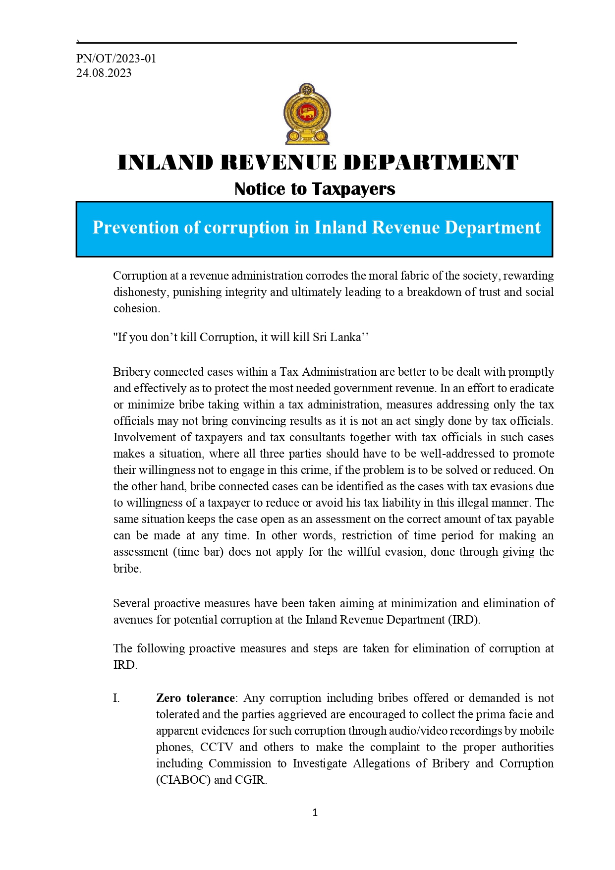 HomeTOP STORYNotice to Taxpayers – INLAND REVENUE DEPARTMENT Notice to Taxpayers – INLAND REVENUE DEPARTMENT 26/08/202326/08/2023byCeylon Independent Post Views: 716