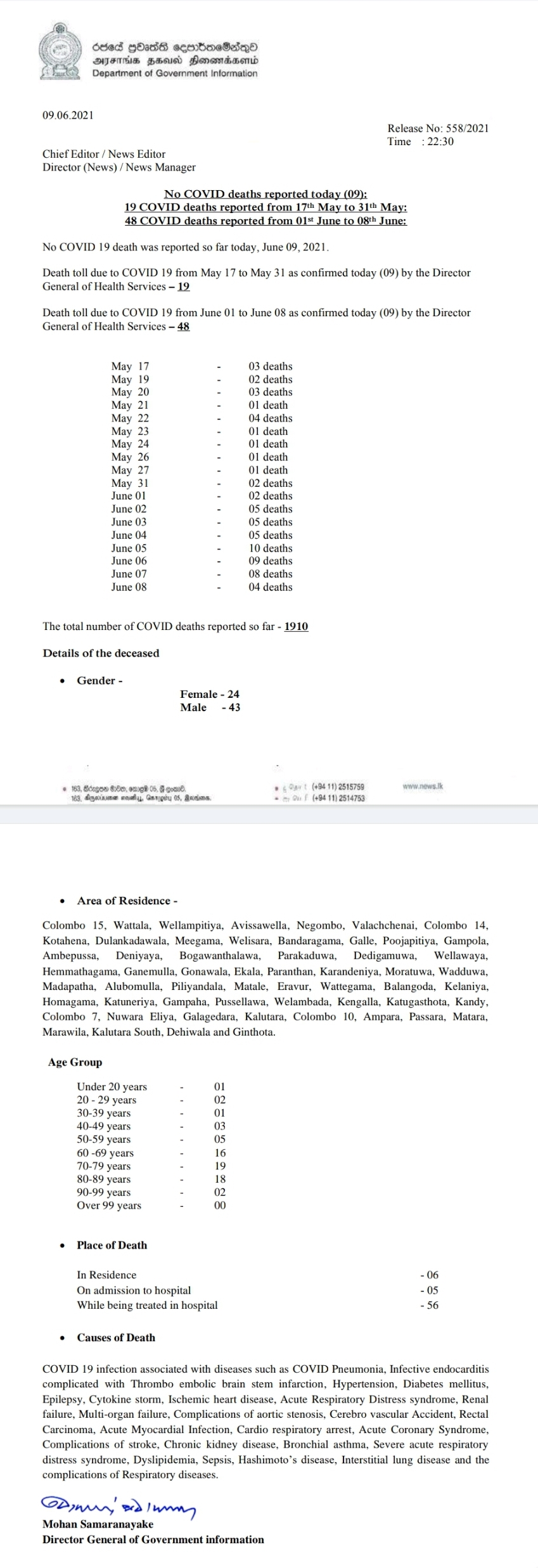 Daily Covid-19 update – 27/08/2021 214 Covid-19 fatalities were reported in a Sri Lanka yesterday (26) increasing the country’s total Covid-19 death toll to 8371,…