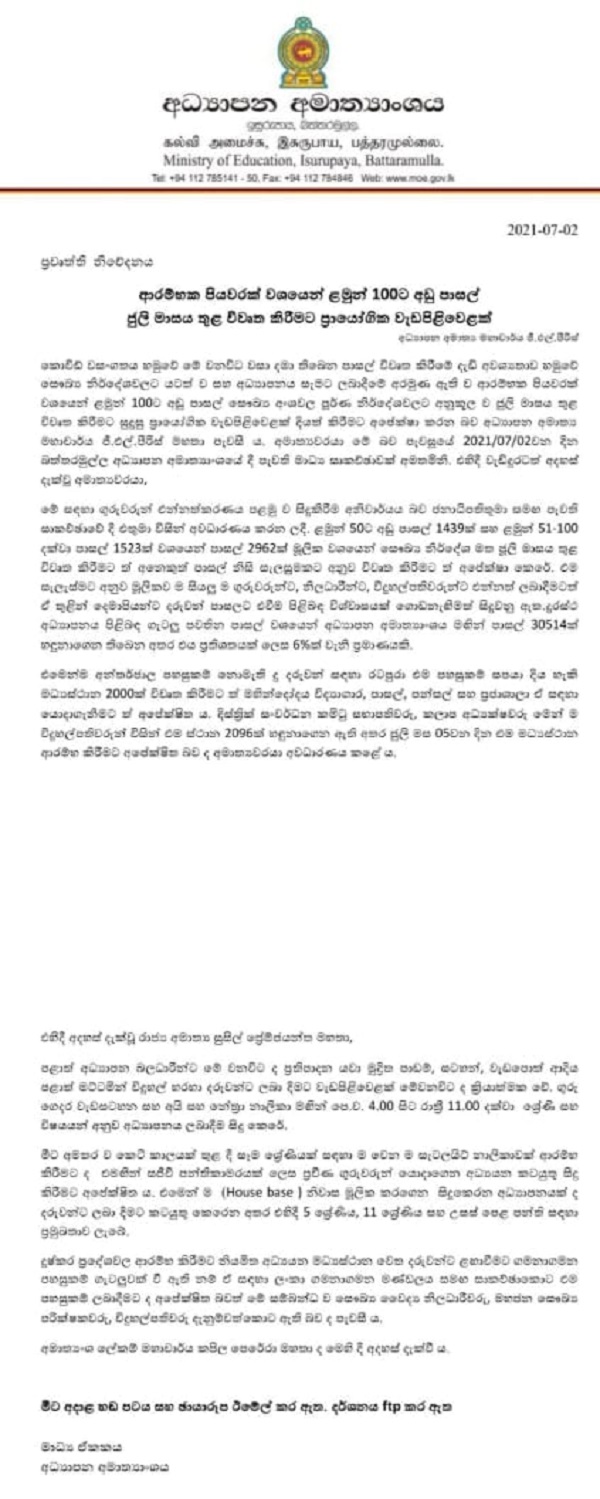 Minister of Education Professor G.L. Peiris announced on Friday (02) that the Government is considering reopening selected schools in July.