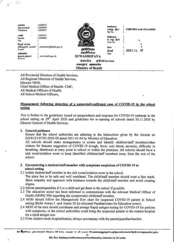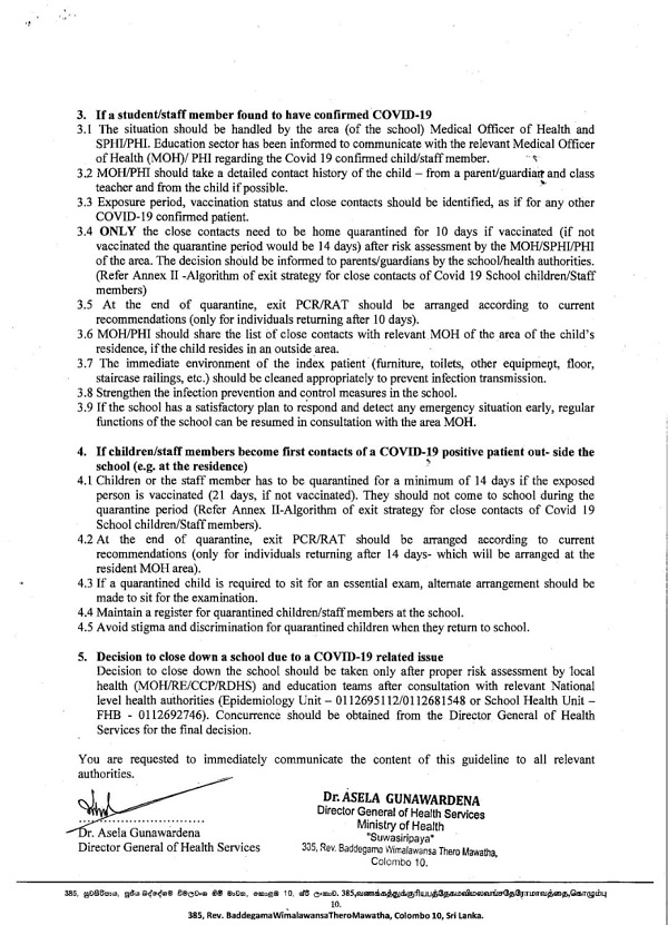 The guidelines were issued by the Director-General of Health Services Dr. Asela Gunawardena yesterday (19).